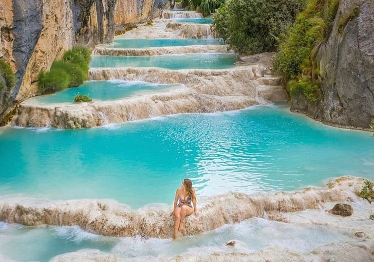 Millpu es un paraje natural de Ayacucho, conocido por sus espectaculares piscinas turquesas formadas por aguas ricas en minerales que descienden de la Cordillera de los Andes.