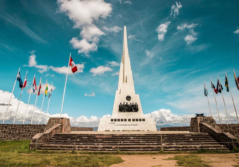 El Santuario Histórico de Quinua conmemora la batalla que selló la independencia sudamericana en 1824. Este pueblo destaca por su imponente obelisco y su entorno natural protegido, famoso por su cerámica y tradición.